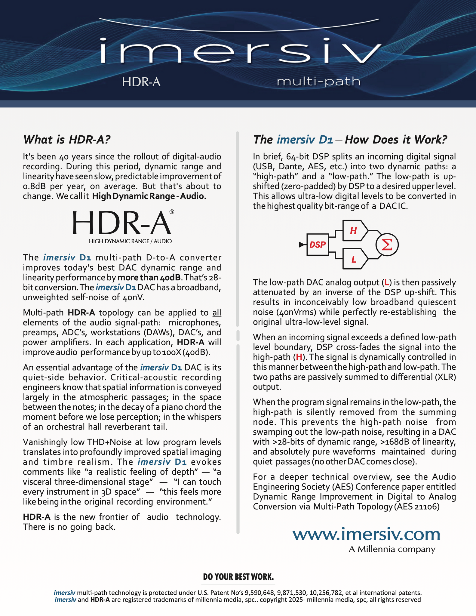 This brand new DAC was created using new, patented methodology to greatly increase the dynamic range, resolution, and dynamics that we are used to hearing only from the finest vinyl systems. Superb imaginging, a wonderful natural sound that has both proper leading edge reproduction as well as harmonic development makes this a DAC like no other. Read all about it on their website WWW.Imersiv.com